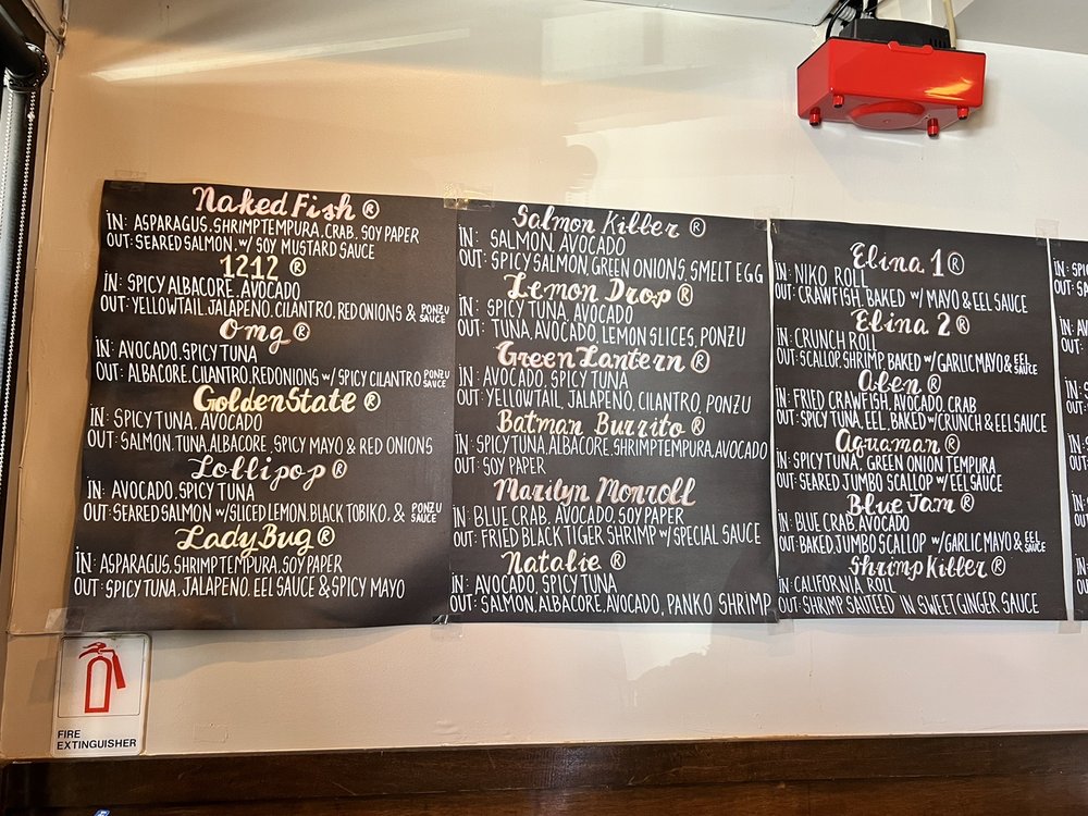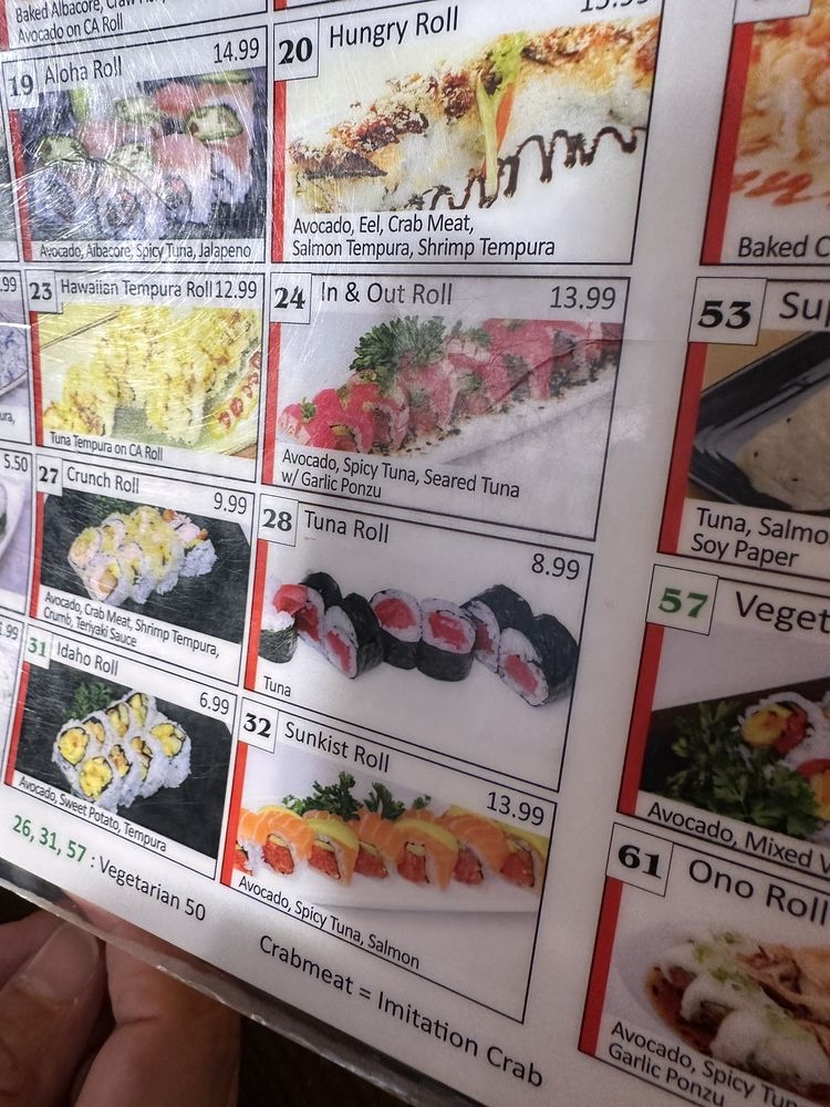 In: spicy tuna, avocado out: albacore, avocado mixed w/ spicy mayo